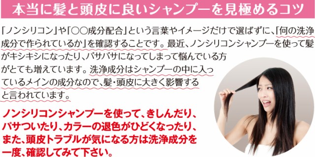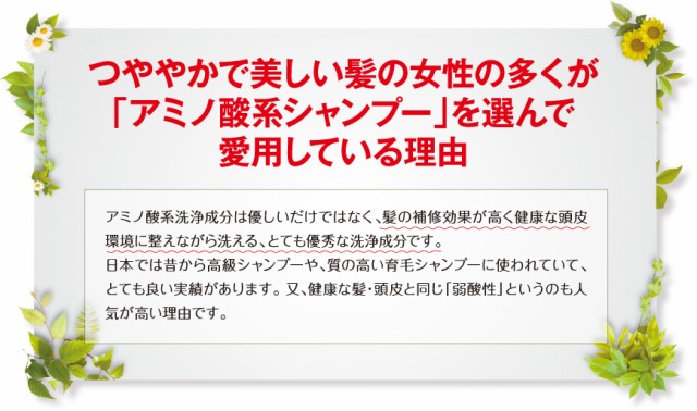 髪を芯(内部)からケアしながら洗えるダメージケア作用が高い天然由来アミノ酸系シャンプーなので、洗うたびに髪の美しさに差が出ます。