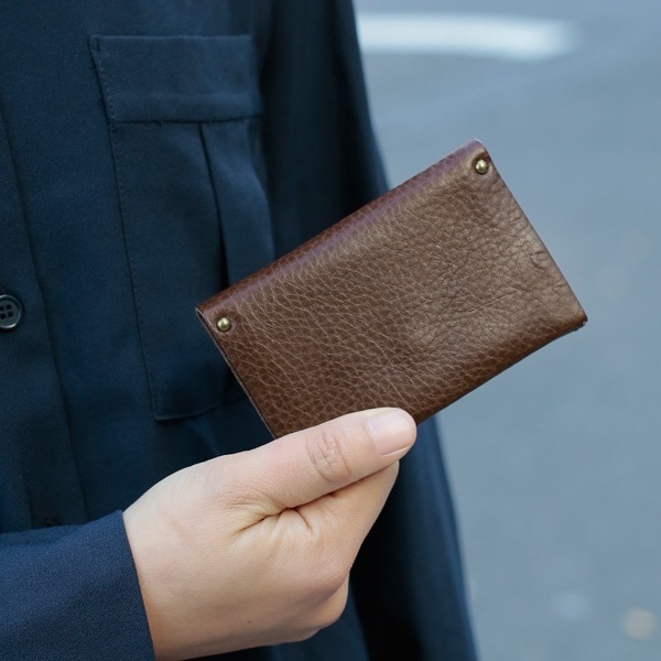 エイジングが楽しめるベジタブルタンニン染めのイタリア製牛革を使用した名刺入れ。開くと両側に名刺を入れられるポケットがあります。ホックはイタリアのPRYM(プリム)社で製造される最も高品質と言えるバネホックを使用しています。ユニセックスで使っていただける名刺入れなのでプレゼントにもピッタリです。