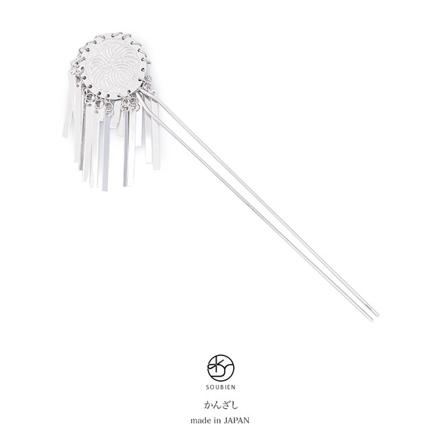 ビラ簪 ビラかんざし 銀 シルバー 蔦文様 円型 ビラ飾り びら簪 前挿し 花魁風 成人式 髪飾り 成人式の髪飾り向け 振袖向き ヘアアクセサリー 日本製 和装