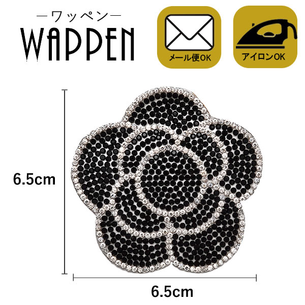 ワッペン アップリケ ストーンワッペン アイロン接着 縦6.5cm×横6.5cm ブラック カメリア フラワー 花母の日 プレゼント ギフト