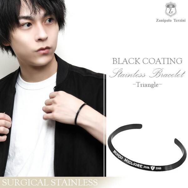 ザニポロタルツィーニ ブラック トライアングル サージカルステンレス バングル メンズ ブレスレット メンズブレスレット ブレス 三角 黒 黒色 男性用