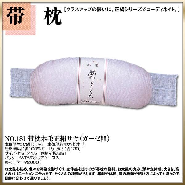 帯枕 No.181【帯枕木毛正絹サヤガーゼ紐】帯を立体的に美しく。帯の姿のよさを演出します。お太鼓を初め、色々な帯姿を形づくり、立体感を出すのが帯枕の役割。お太鼓の丸み、形や立体感、大きさ、高さのバリエーションに合わせて、たくさんの種類があります。年齢や体形、帯の種類や結び方によってちがうので、目的に合わせて選びましょう。