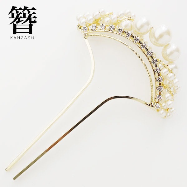 「簪」コレクション。留袖や訪問着などのフォーマルな着物におすすめなバチ型簪です。こちらの商品は上質なラインストーンやパールビーズを贅沢に使用し、日本製ならではの、細部まで丁寧な作り込みがしてあるので、でとても高級感があります。写真の通り細部にわたって手作りでしっかり繊細に作られています。実際には目に見えない裏側まで繊細な作り込みがしてあるのは日本製ならではです。結婚式、パーティー、成人式に最適です。●サイズ幅=約7.5cm,長さ=約11.5cm
