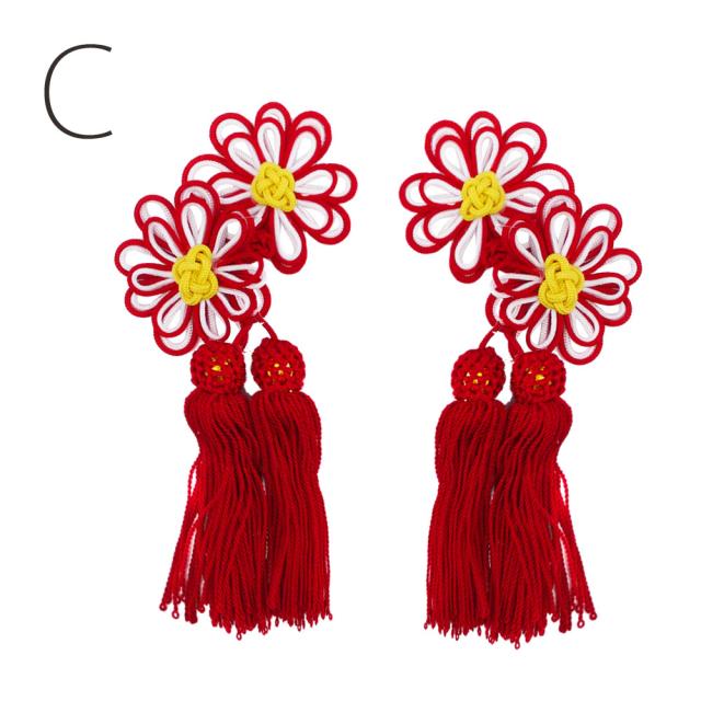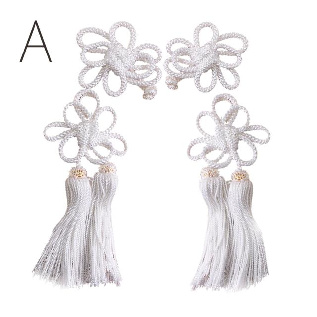 七五三被布コート用の飾り房です。房のついた伝統的な形状ですので、古典柄の被布コートにも合わせてもぴったり。市販の被布コートセットも可愛く飾って自分だけのオリジナルに。花の直径:約5cm/房の長さ:約8cm/2個セット※Aの商品のみ、花が分かれています。