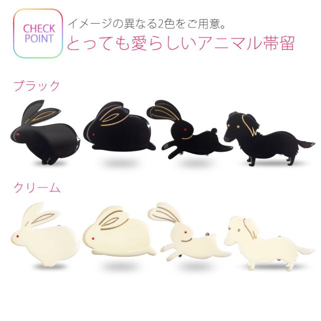 【在庫処分セール】とってもキュート アニマル帯留め ブラック&クリーム 可愛い 8種類から選べなす【うさぎ 犬 ダックスフンド 象牙調】結婚式 卒業式 成人