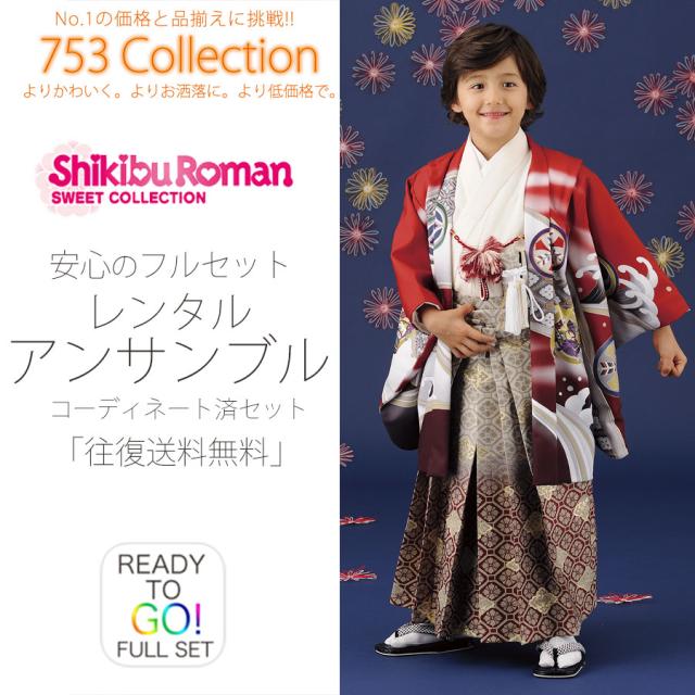 式部浪漫 七五三 レンタル 羽織袴 カンタン着付け アンサンブル レンタル 七五三 貸衣装 男児 往復送料無料 赤 白 縁起柄