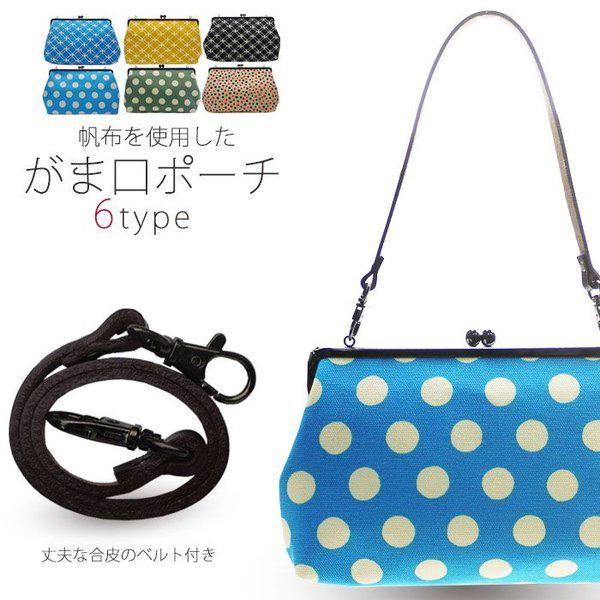 【在庫処分セール】日本製 帆布の がま口 ポーチ 選べる6タイプ 化粧品入れ 小物入れ 猫 青 赤 グレイ 灰色 丸 ドット プレゼント 贈り物