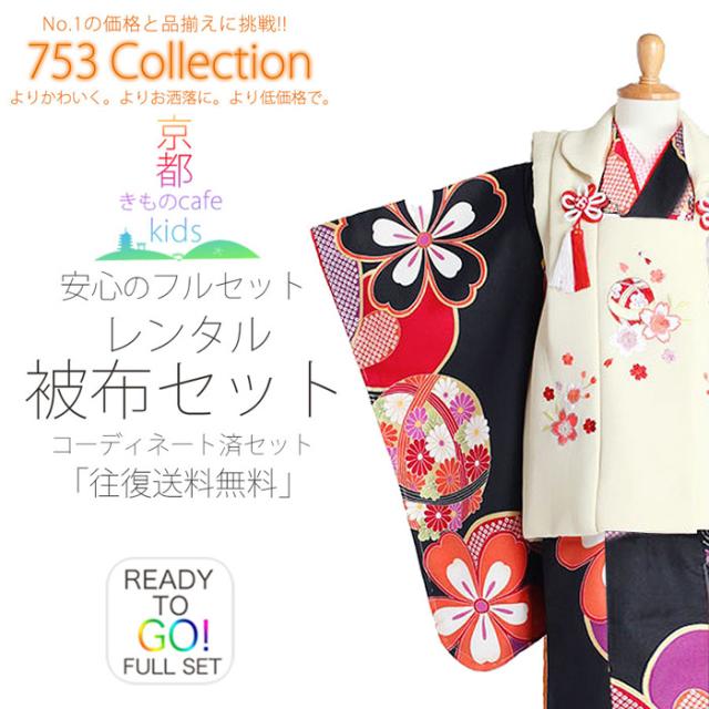 オリジナル レンタル 被布コート 七五三 貸衣装 女児 セット 往復送料無料 白 黒