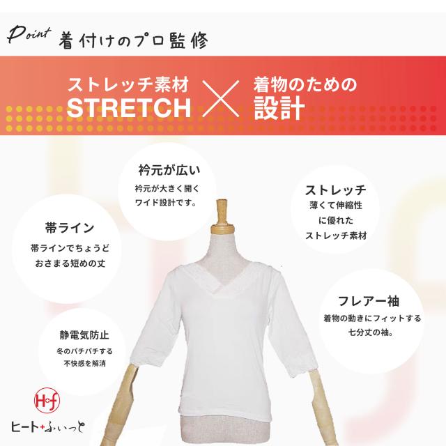 和装インナー 「ヒート+ふぃっと」七分丈 シャツ 選べる2 サイズ M L 東レ「ソフトサーモ」あたたかく、快適な肌触り ストレッチ×着物の為の設計 卒業式 入学式 結婚式 結納 小紋 留袖 訪問着 無地 紬 肌襦袢 和装下着 防寒 で送料無料