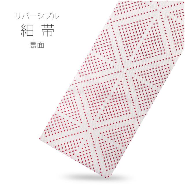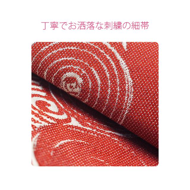 おりびと -織美桐- 細帯 ブランド 日本製 半巾 着物 帯 レトロ モダン おしゃれ着 訪問着 浴衣【I-29B】 白 赤 古典柄 うずまき