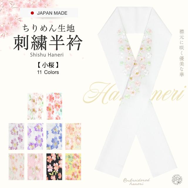 豪華 な 刺繍 の 半衿 振袖用 小桜 選べる11色 送料無料 白 ピンク クリーム ベージュ 黒 紫 成人式・前撮り・結婚式・卒業式・振袖・訪問着・小紋 ハイクラス おしゃれ着にも合わせやすい