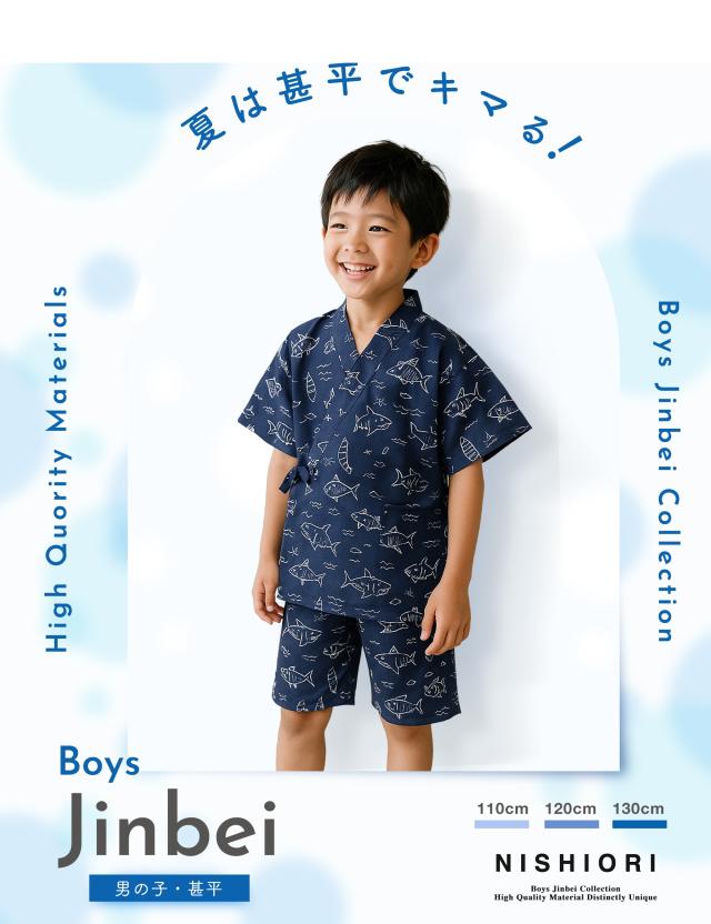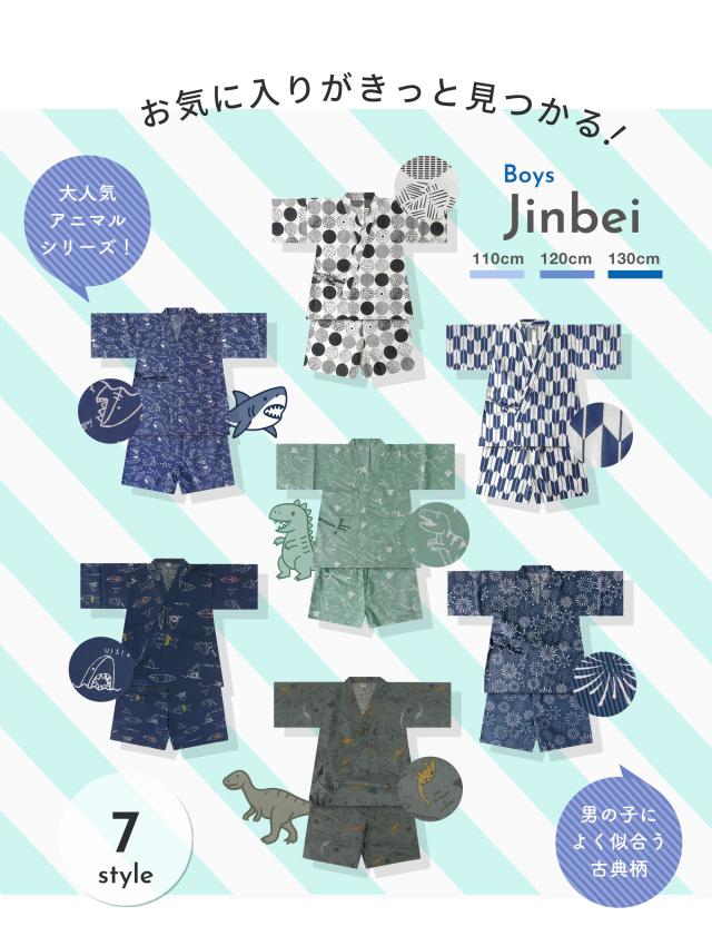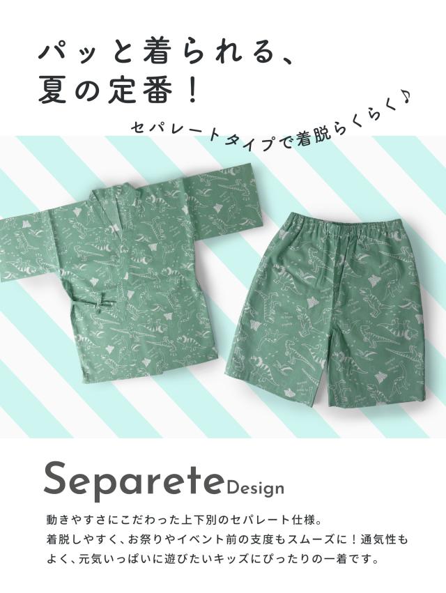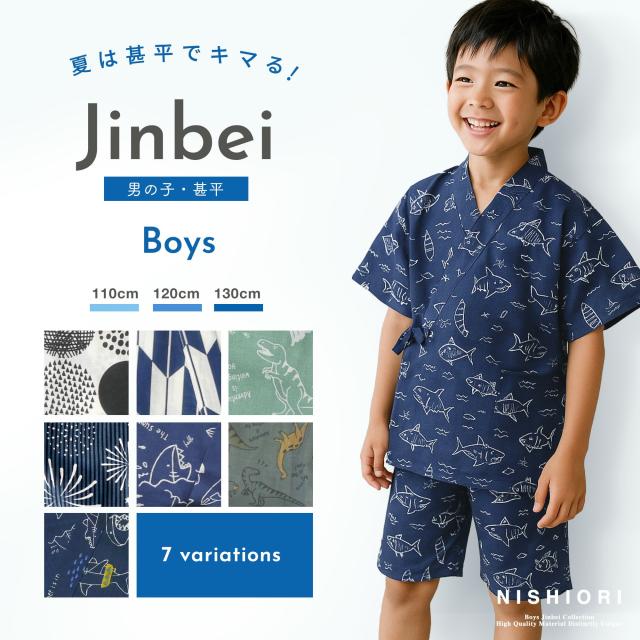 2025年 新作 男児 甚平 選べる 7柄 3サイズ 110cm・120cm・130cm 2才/3才/4才/5 恐竜 サメ ドット アニマル柄 古典柄 矢羽 男の子 紺 濃紺 青 緑 男児甚平 じんべい セパレート 簡単着付け 夏祭り 花火大会 部屋着にも セットアップ 綿100%で肌触り◎