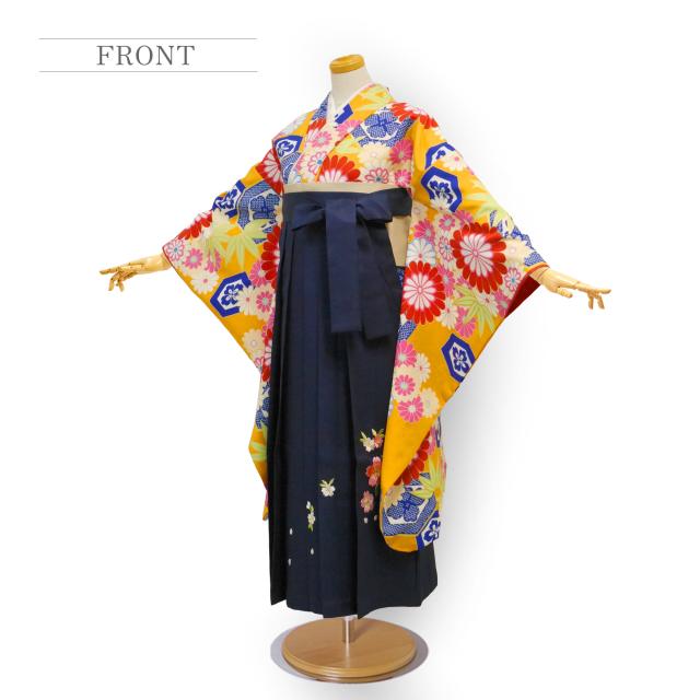 ジュニアサイズ 二尺袖 着物 袴 レンタル 往復貸衣装 卒業式 小学生 対応可 橙 菊亀甲 竹 ブーツ選択可