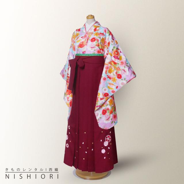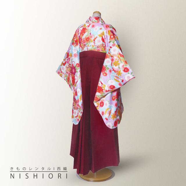 ジュニアサイズ 二尺袖 着物 袴 レンタル 往復貸衣装 卒業式 ジュニア 小学生 対応可 水色 松竹梅 ブーツ選択可