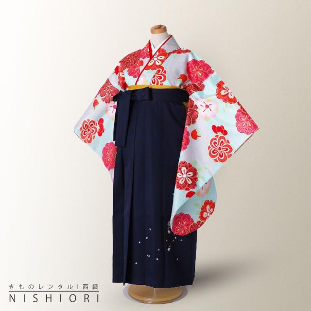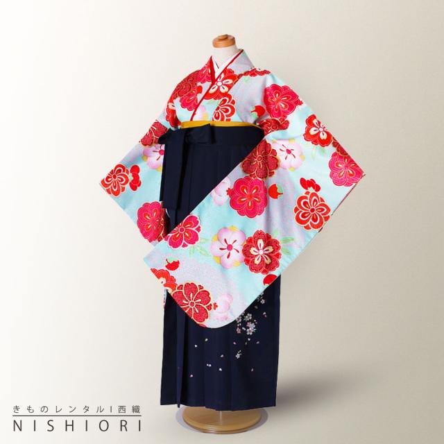 ジュニアサイズ 二尺袖 着物 袴 レンタル 往復貸衣装 卒業式 ジュニア 小学生 対応可 水色 桜 梅 ブーツ選択可