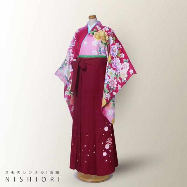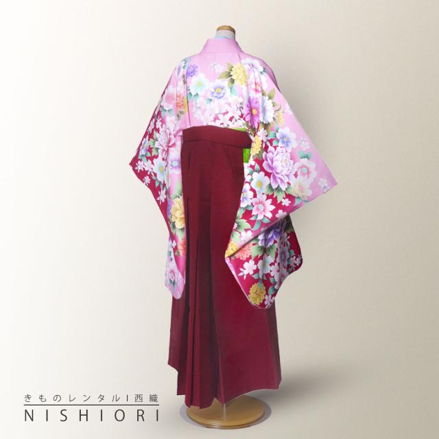 ジュニアサイズ 絵羽柄 二尺袖 着物 袴 レンタル 往復貸衣装 卒業式 ジュニア 小学生 対応可 赤 ピンク 牡丹 桜 花柄 ブーツ選択可