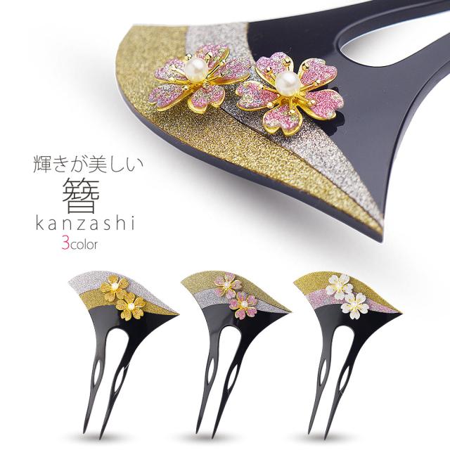 パールとラメが美しい 高級 かんざし 選べる3色 桜 さくら 花 バチ型 簪 日本製 髪飾り 最安値に挑戦 振袖 留袖 訪問着 婚礼 結婚式 卒業式 袴 和装