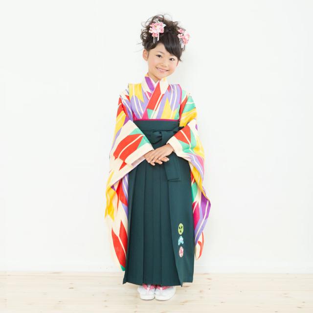 卒園用 小町kids 女児 着物 袴 レンタル 110cm 120cm 貸衣装 往復送料無料 卒園式 七五三 矢絣 マルチカラー 緑 赤 紫
