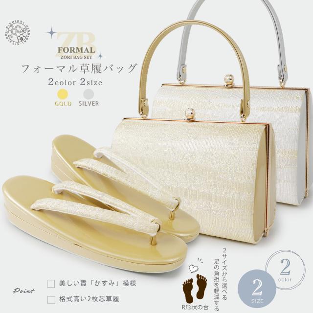 高級帯地 霞 草履バッグ セット 選べる2色 2サイズ フリー LLサイズ フォーマル エナメル 帯地 フリーサイズ 留袖 訪問着 振袖に バック かすみ