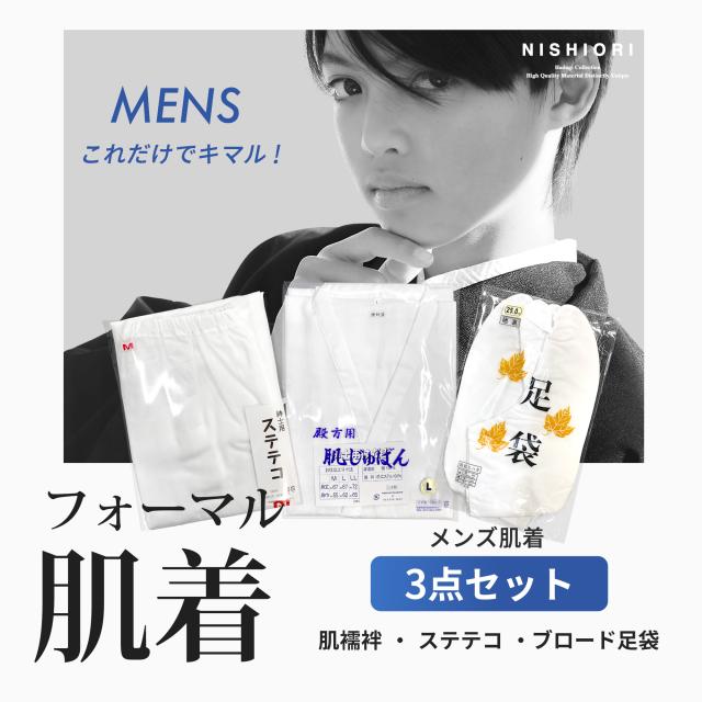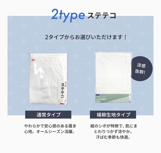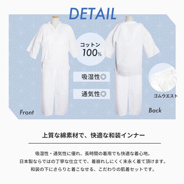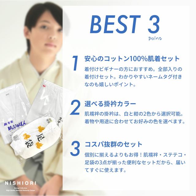 和装肌着 紳士用 3点セット 掛襟選べる2色 ステテコ 和装下着 ビギナーの方からヘビーユーザーまで幅広く対応します。 着物初心者の方には特にオススメ