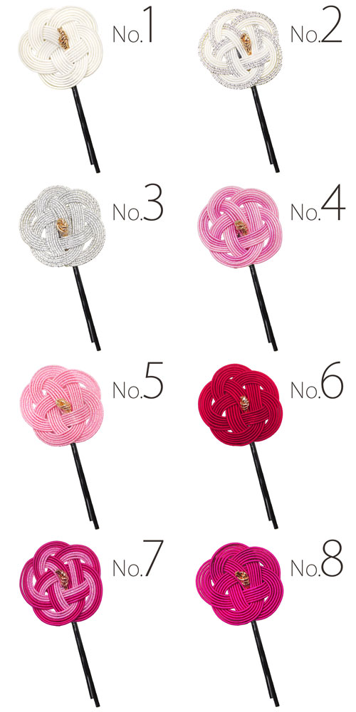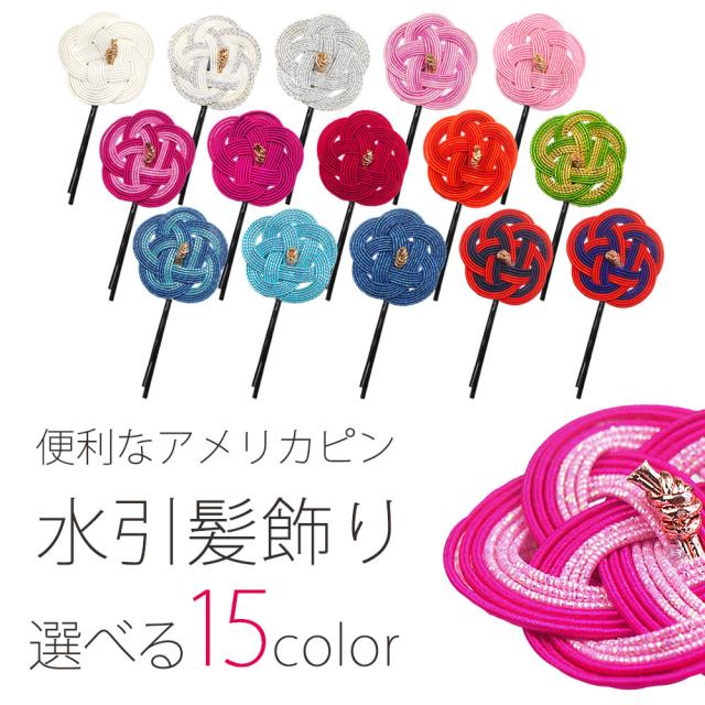 伝統飾りの水引を使用した使いやすいアメリカピンです。お団子に差す他にも、帯飾りとしても使えます。◆サイズ長さ約7cm/花の直径3.5cm
