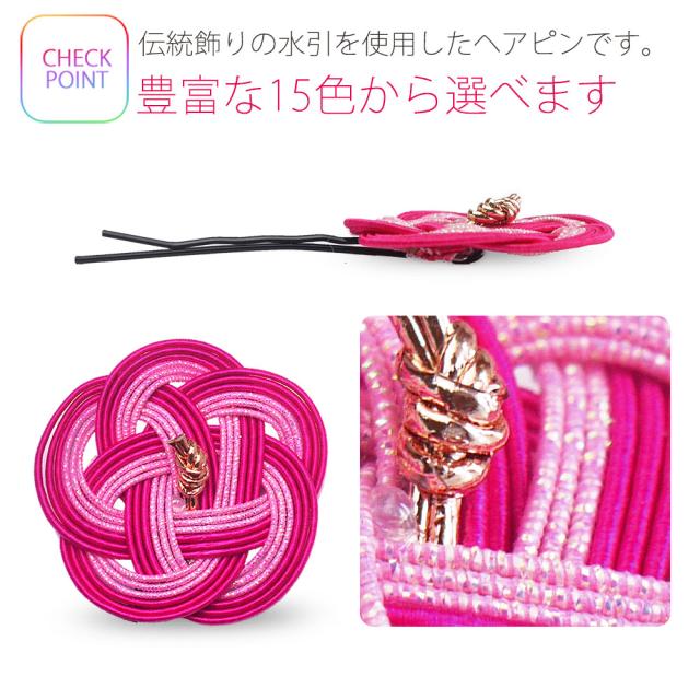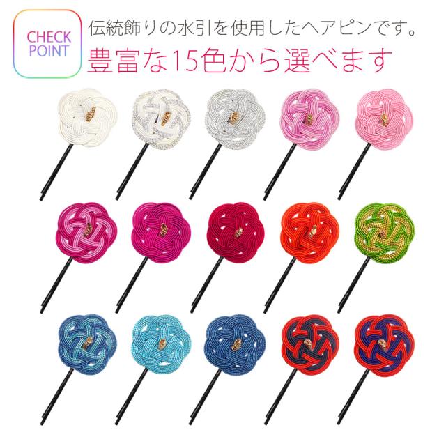 DM可! 水引き梅 髪飾り アメリカピン タイプ 選べる15色カラバリ レディース 伝統柄 縁起物 七五三 成人式 浴衣 卒業式 結婚式 披露宴 赤