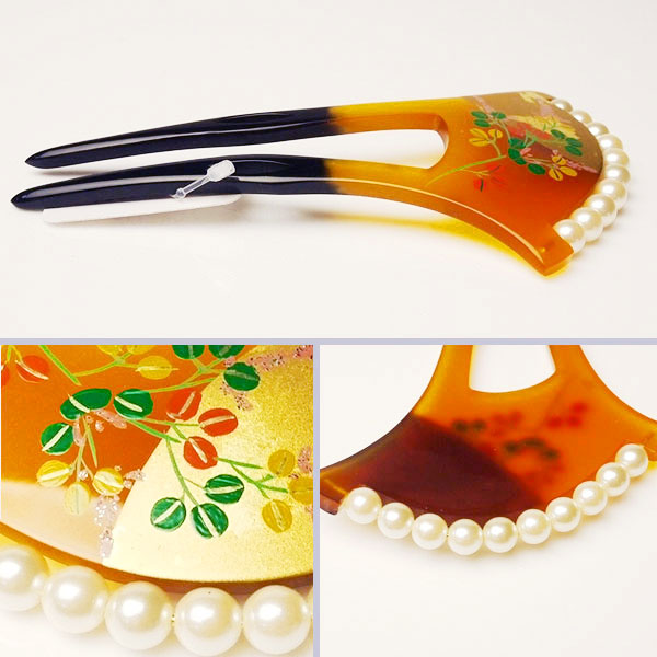 「簪」コレクション。留袖や訪問着などのフォーマルな着物、振袖におすすめな簪です。日本製ならではの、細部まで丁寧な作り込みがしてあるので、とても高級感があります。写真の通り細部にわたって手作りでしっかり繊細に作られています。実際には目に見えない裏側まで繊細な作り込みがしてあるのは日本製ならではです。結婚式、パーティー、成人式に最適です。●サイズ=幅=約7cm・長さ=約11cm