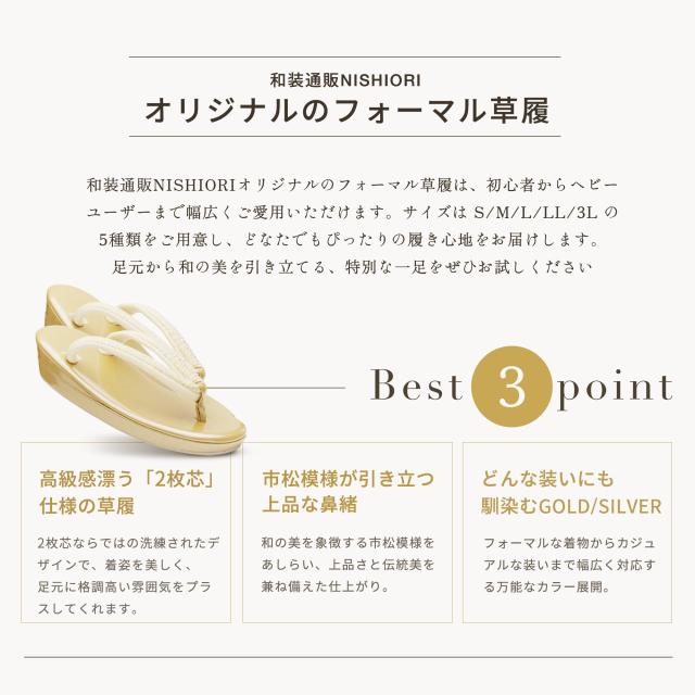 市松の鼻緒 レディース フォーマル 草履 選べる 2色 5サイズ 単品 金 銀 ゴールド シルバー フォーマル 太めの鼻緒 痛くない鼻緒