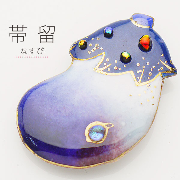 【七宝焼】[四季暦](なすび)高級帯留め 帯飾り・高級ケース付