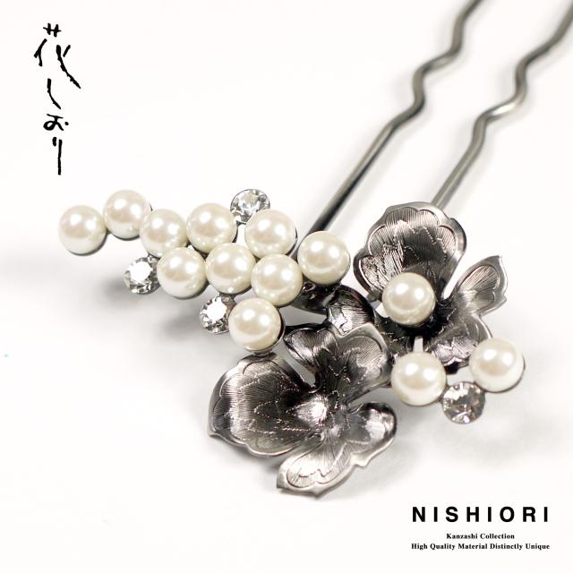 高級かんざし 簪 花しおり 送料無料 日本製 髪飾り 最安値に挑戦 振袖 留袖 訪問着 婚礼 結婚式 卒業式 袴 和装 着物 洋装 和洋兼用 【真鍮 白 パール ラインストーン ブドウ 葡萄】