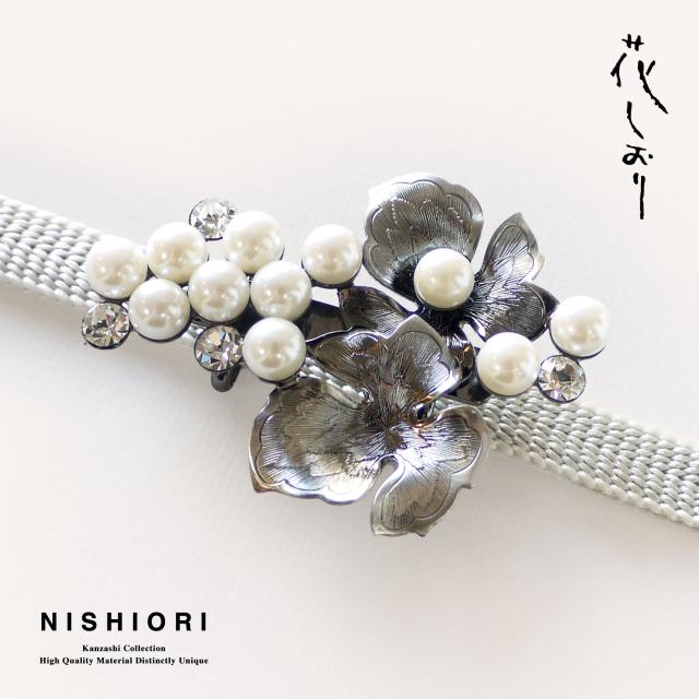 \送料無料/ 高級花しおり 高級 帯留め 日本製 送料無料 最安値に挑戦 振袖 留袖 訪問着 婚礼 結婚式 卒業式 袴 和装 着物 洋装 和洋兼用【ラインストーン 真鍮 白 パール】