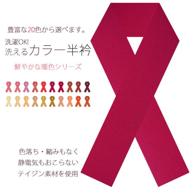 半衿は着物の大事なコーディネートのポイントです。全部で64色から選べます。あなたの欲しいカラーも、きっと見つかるはず!洗っても縮むことなく、風合いも変わりません。色落ちや静電気の心配もありません。