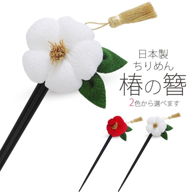 ちりめん 椿 の 一本差し 簪 日本製 選べる2色 赤 白 コサージュ レディース 子供 七五三 成人式 浴衣 卒業式 結婚式 披露宴 袴 振袖