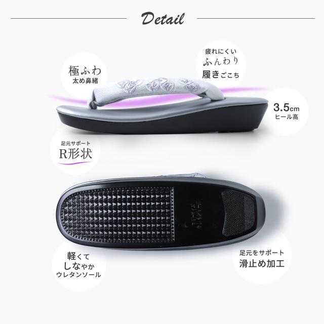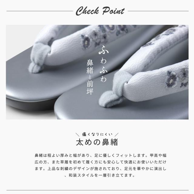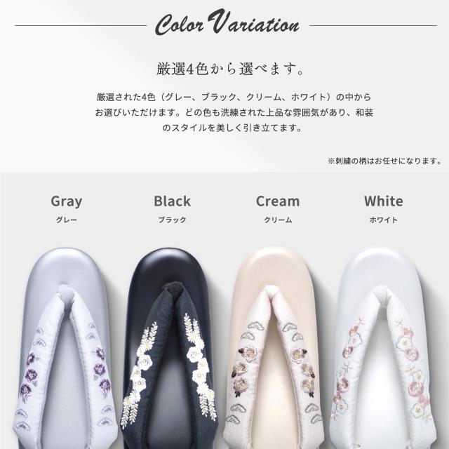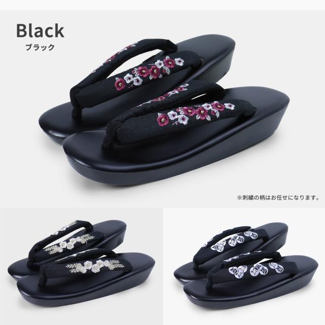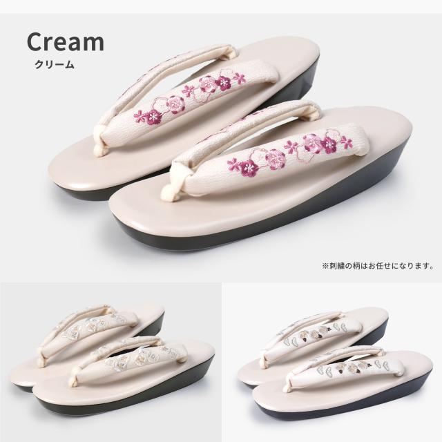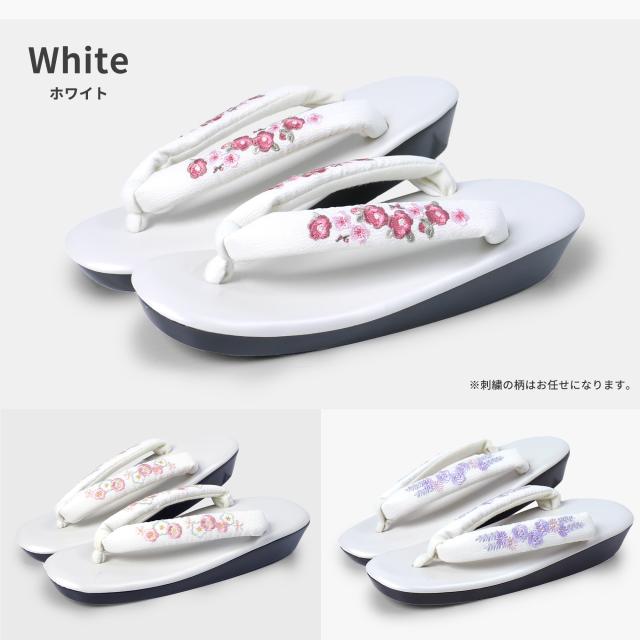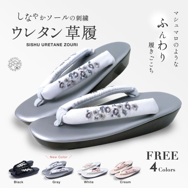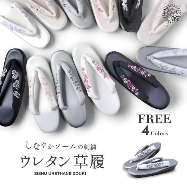 刺繍の鼻緒 ウレタン草履 選べる4色 刺繍のデザインはお任せ 太い鼻緒 黒 ピンク クリーム 白 ホワイト ブラック 草履 レディース ウレタンソール