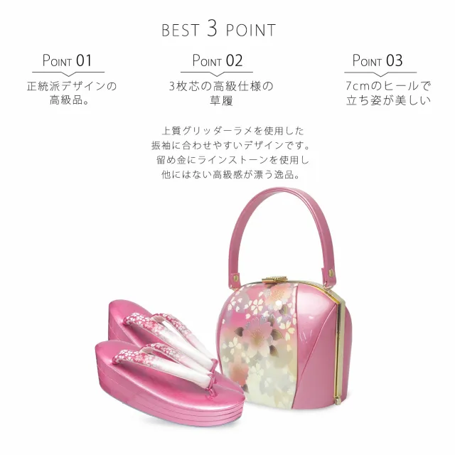草履は厚底の通し3枚芯を採用。晴れの日にぴったりです。