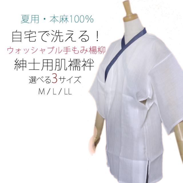 夏用 紳士用 男性用 洗える肌襦袢 麻100% 手もみ楊柳 選べるサイズ 青 日本製 M/L/LL