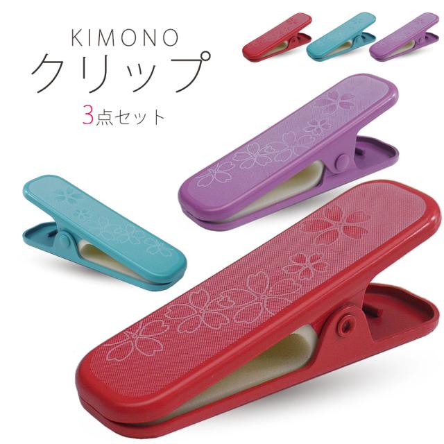 桜柄がかわいい 便利な着物用 クリップ 3点セット 青 赤 紫 着付けや 裾押さえに 結婚式 結納 小紋 留袖 訪問着 無地 紬