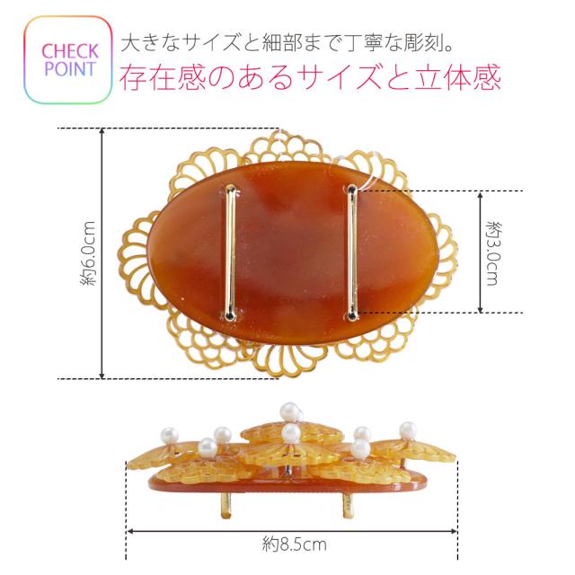 【在庫処分セール】象牙調・べっ甲調 高級帯留 立体彫刻 パール 白 クリーム クリア 楕円 ブローチ ねじり菊【留袖 付下げ 訪問着 小紋 卒業式 入学式】