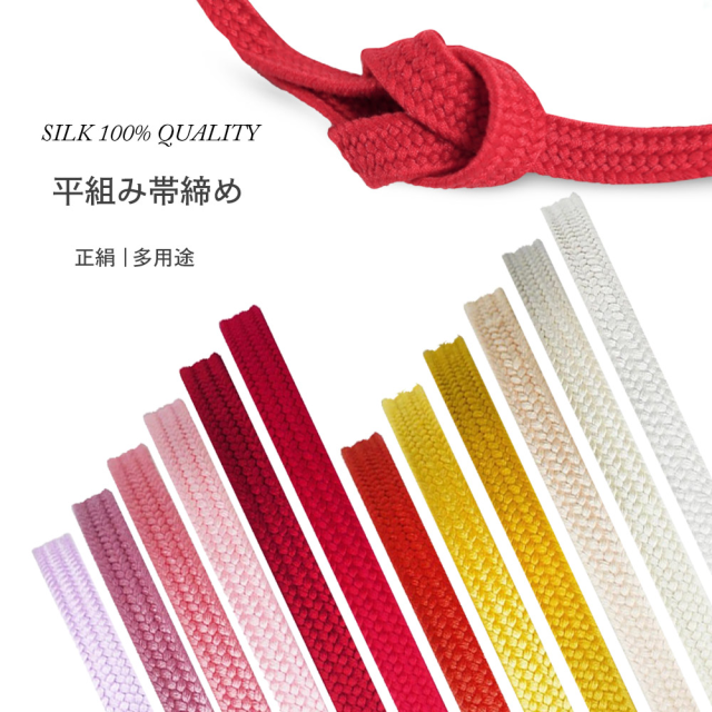 絹100% 平組 振袖用 シンプルな 帯〆 選べる豊富な30色 卒業式 振袖 成人式 袴 帯締め 正絹 シルク 赤 黄 橙 紫 緑 青 紫 白 黒 ピンク