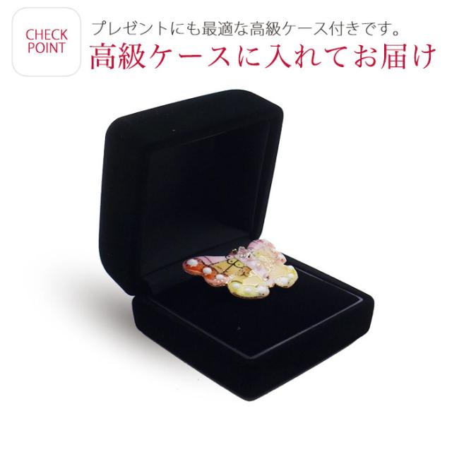 クリスマスとお正月シリーズいつものコーディネートをワンランクアップしてくれるアイテムが「帯留」三分紐に通して、帯周りのお洒落をお楽しみいただけます。色々なシーンにご使用いただけて飾りにも最適です。化粧箱とケースに入ってのお届けですので、贈り物などに最適です。※を書いて50円OFF!ご注文時にプルダウンメニューにて選択して下さい。出荷時に当店にて価格変更を行います。予めご了承下さいませ。※一点一点手作りのため、色やサイズなど、若干の差がございます。あらかじめご了承ください。■スペック・寸法 約3cm×約3.4cm・素材 七宝焼 真鍮・生産国 日本製