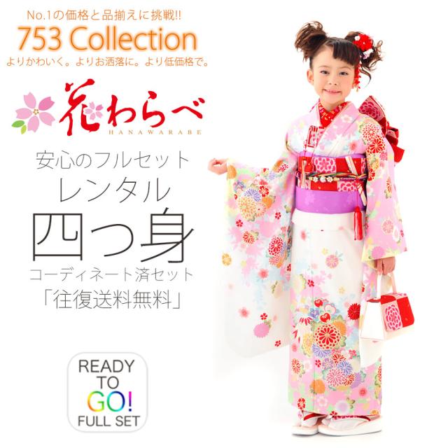 花わらべ 七五三 四ツ身 着物 レンタル 7歳 貸衣装 七五三 子供 女児 和服 セット 日本舞踊 往復送料無料 ピンク きなり 桜