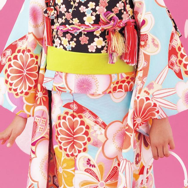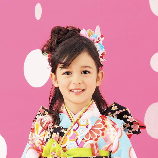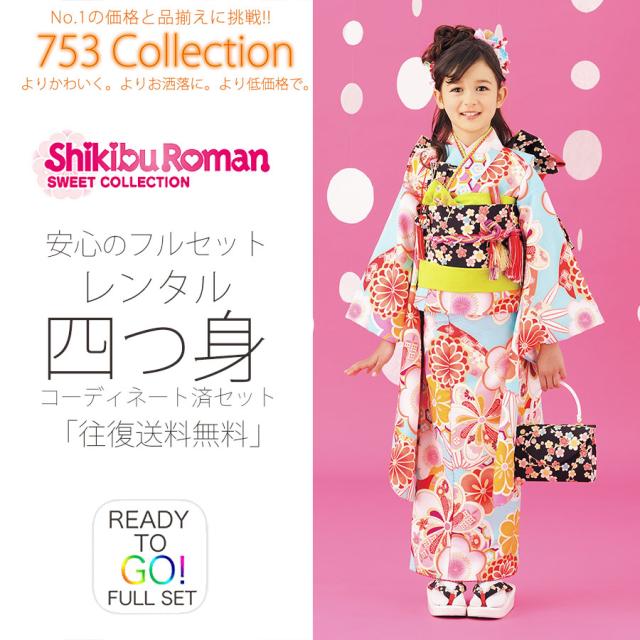 式部浪漫 七五三 レンタル 四つ身 着物 七五三 貸衣装 女児 和服 セット 古典 往復送料無料 水色 ねじり梅