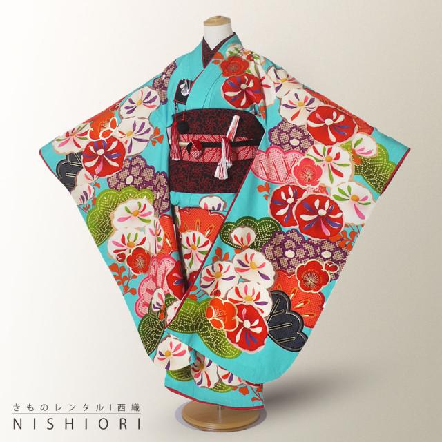 内田篤人×JAPAN STYLE 七五三 レンタル 四つ身 着物 七五三 貸衣装 女児 和服 セット 古典 往復送料無料 古典 青 水色