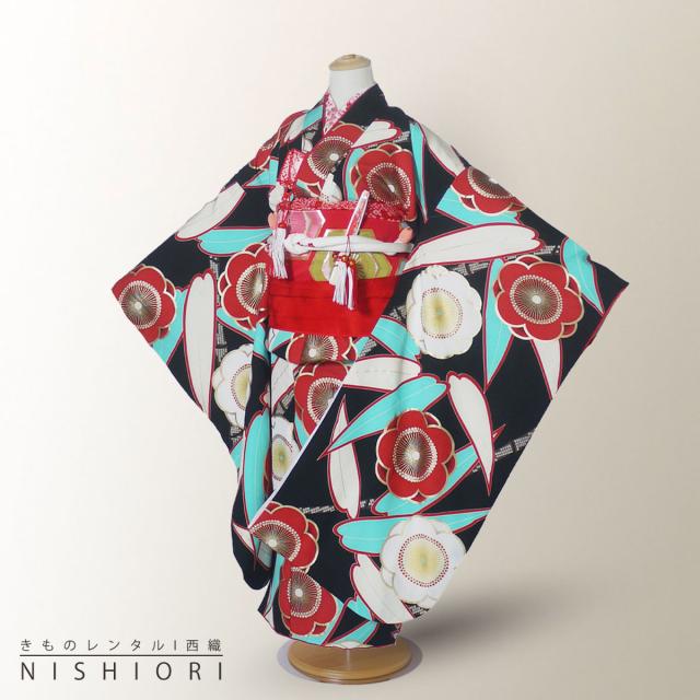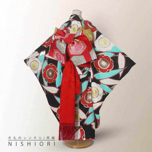 紅一点 七五三 レンタル 四つ身 着物 七五三 貸衣装 女児 和服 セット 古典 往復送料無料 古典 黒