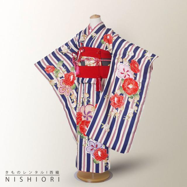 KAGURA 式部浪漫七五三 レンタル 四つ身 着物 七五三 貸衣装 女児 和服 セット 古典 往復送料無料 古典 縦筋 ストライプ 椿 お参り【7歳 貸衣装 七歳 女の子】
