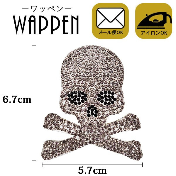 ワッペン アップリケ ストーンワッペン アイロン接着 縦6.7cm×横5.7cm ブラック スカル ドクロ 髑髏母の日 プレゼント ギフト