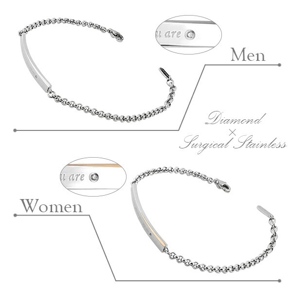刻印無料 ブレスレット ペア 甲丸チェーン ダイヤモンド ペアブレスレット ペア ステンレス サージカルステンレス ペアブレス 医療用ステンレス