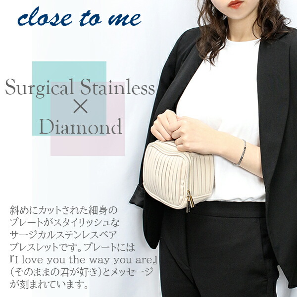 【close to me】甲丸チェーン ダイヤモンド サージカルステンレス ペアブレスレット【ギフトBOX付き】