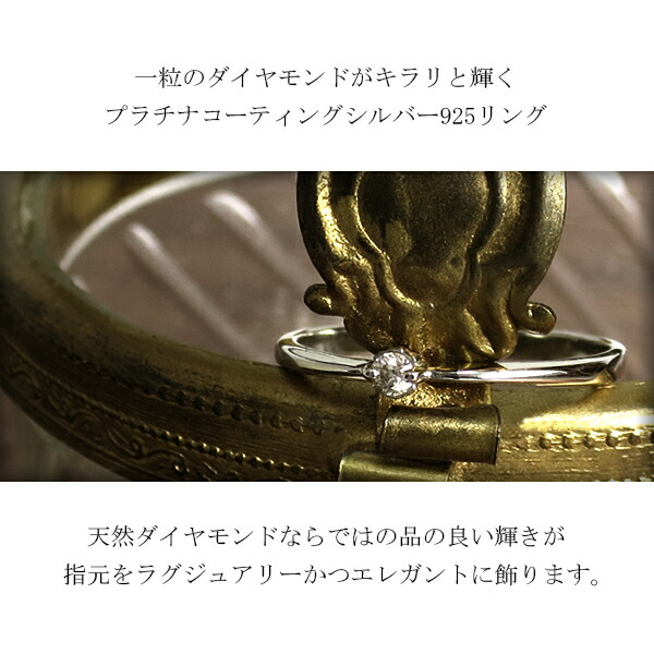一粒のダイヤモンドがキラリと輝く、プラチナコーティングされたレディースリングです。