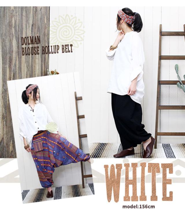 【メール便OK】 トップス レディース ユニセックス 【SPT】ロールアップベルト付き ドルマンブラウス 2025年春夏